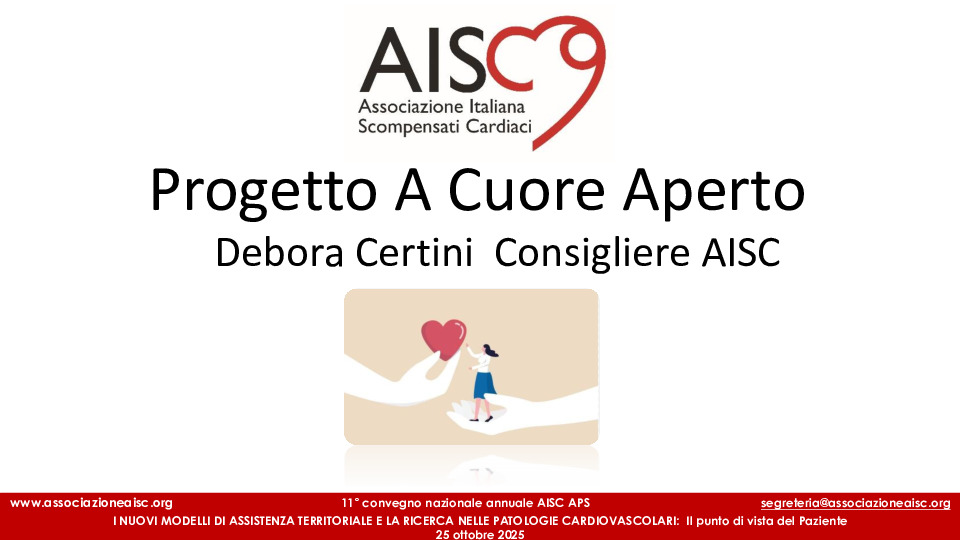 "I NUOVI MODELLI DI ASSISTENZA TERRIORIALE E LA RICERCA NELLE PATOLOGIE CARDIOVASCOLARI: Il punto di vista del Paziente"
