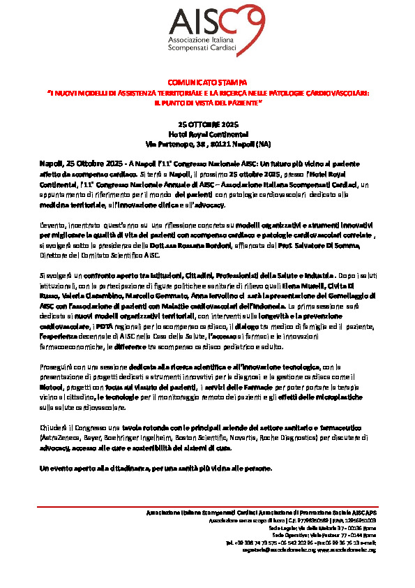 I NUOVI MODELLI DI ASSISTENZA TERRITORIALE E LA RICERCA NELLE PATOLOGIE CARDIOVASCOLARI: IL PUNTO DI VISTA DEL PAZIENTE