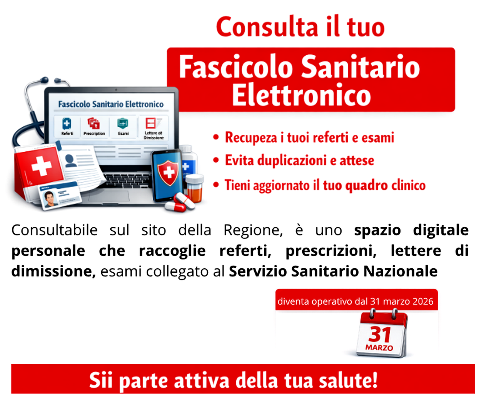 E’ collegato al Servizio Sanitario Nazionale e, a partire da oggi 31 marzo, diventa uno strumento operativo. Infatti, dal 31 Marzo 2026 parte una fase decisiva: tutte le strutture sanitarie pubbliche e private devono seguire regole omogenee per caricare i documenti nel fascicolo.